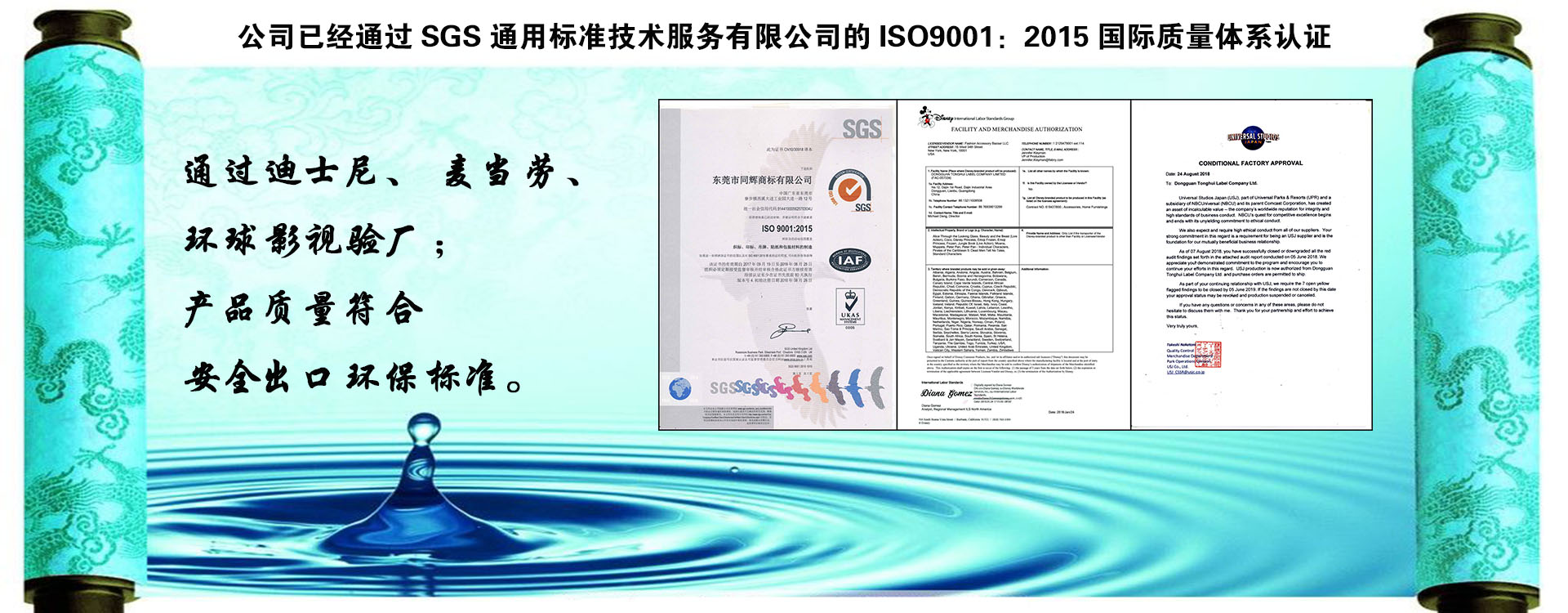 東莞市同輝商標(biāo)輔料及包裝印刷有限公司是一家專業(yè)從事商標(biāo)制造、包裝印刷的企業(yè),主營(yíng)生產(chǎn)和銷售:各類織嘜商標(biāo),織章,印刷商標(biāo),印嘜,標(biāo)簽印刷,不干膠商標(biāo),絲印商標(biāo),熱轉(zhuǎn)印標(biāo),無(wú)感商標(biāo),燙嘜,皮牌商標(biāo),電壓商標(biāo)、商標(biāo)帶、繡花標(biāo),布貼標(biāo)、皮貼標(biāo)、商標(biāo)吊牌,彩卡,折盒等廣泛用于各行各業(yè)。工廠經(jīng)過(guò)多年的發(fā)展與開(kāi)拓,規(guī)模日益發(fā)展壯大。從設(shè)計(jì)制作、工程研發(fā)、生產(chǎn)制造、產(chǎn)后加工、品檢、物流配送、售后服務(wù)等一套完整的優(yōu)質(zhì)服務(wù)體系,及優(yōu)秀的經(jīng)營(yíng)管理團(tuán)隊(duì)。已通過(guò)SGS ISO9001:2008(新版是2015版)國(guó)際質(zhì)量體系認(rèn)證,產(chǎn)品質(zhì)量符合各國(guó)安全出口環(huán)保標(biāo)準(zhǔn)。承蒙國(guó)內(nèi)外客戶的大力支持,目前已有許多國(guó)際著名品牌定點(diǎn)授權(quán)我公司生產(chǎn),并是通過(guò)全球迪士尼FAMA認(rèn)證驗(yàn)廠,麥當(dāng)勞驗(yàn)廠,環(huán)球影視驗(yàn)廠的供應(yīng)商,是各行業(yè)值得信賴并具有實(shí)力的合作伙伴。